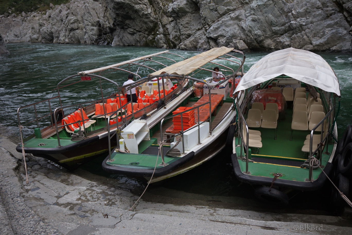 L’attraction du coin: la balade d’à peine 30 mn A/R en bateau sur la rivière Yoshino. Quasi en face du ryokan.