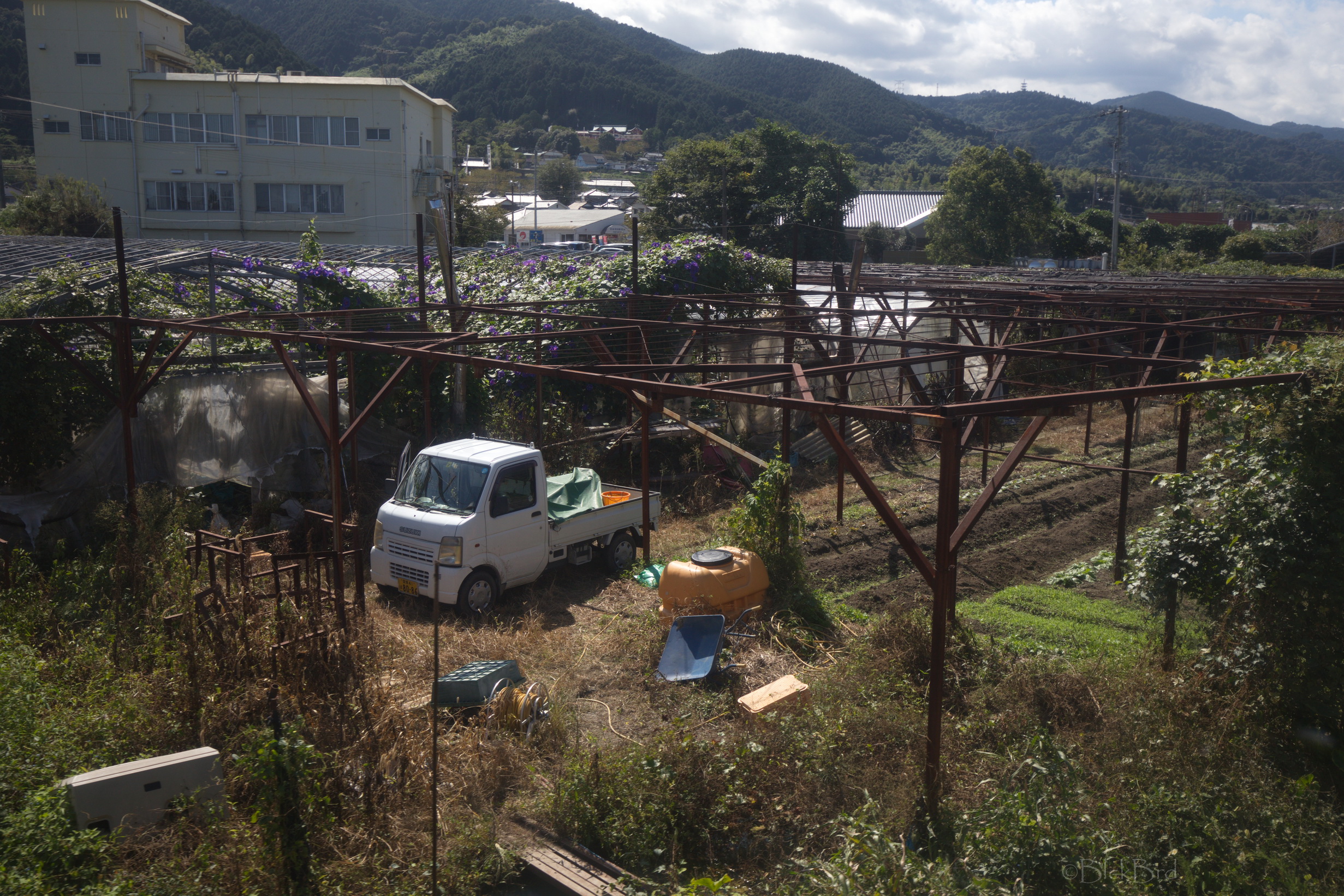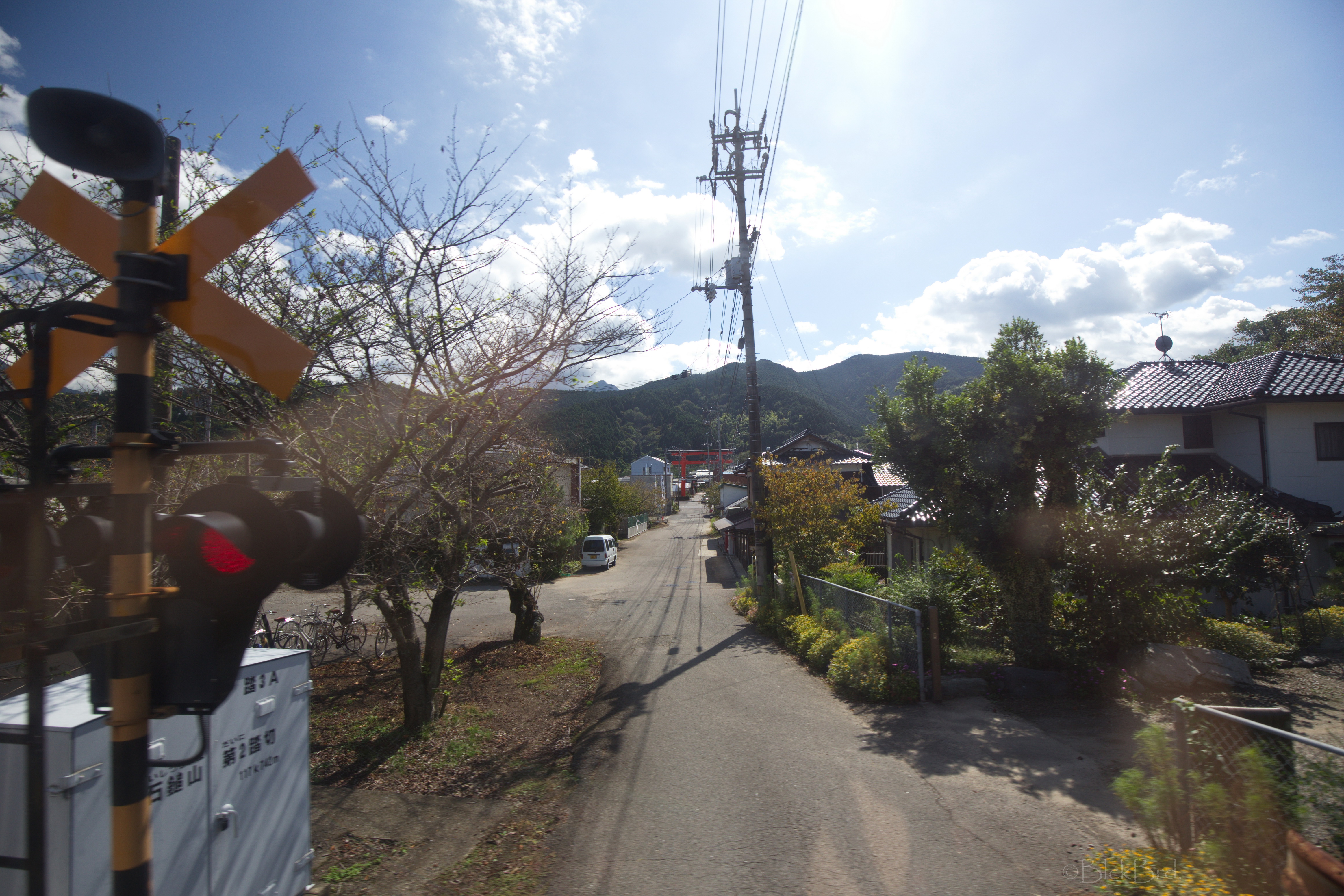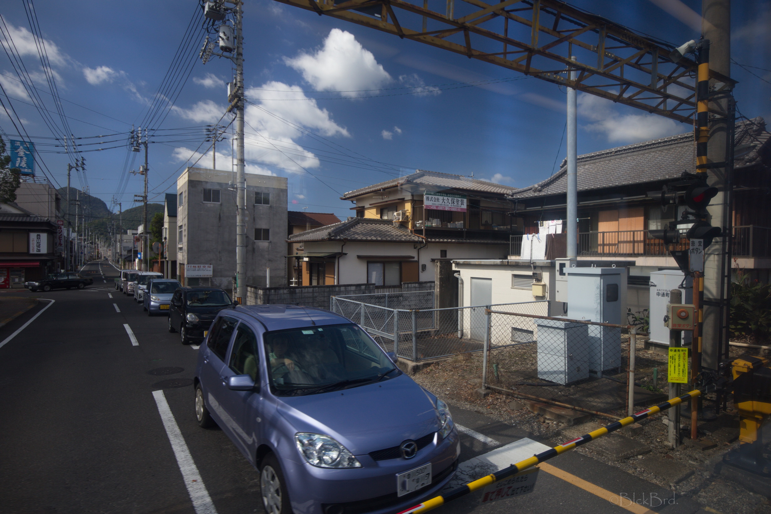 D’abord les adieux du personnel du ryokan……….. une dame agite avec grande conviction un drapeau français jusqu’à ce que notre véhicule navette soit hors de vue… Je croyais qu’au Japon, ne pas mettre l’autre dans l’embarras était une base de la politesse, à chaque fois ça me met grave mal à l’aise ce genre de trucs, je prie tellement fort pour être ailleurs…