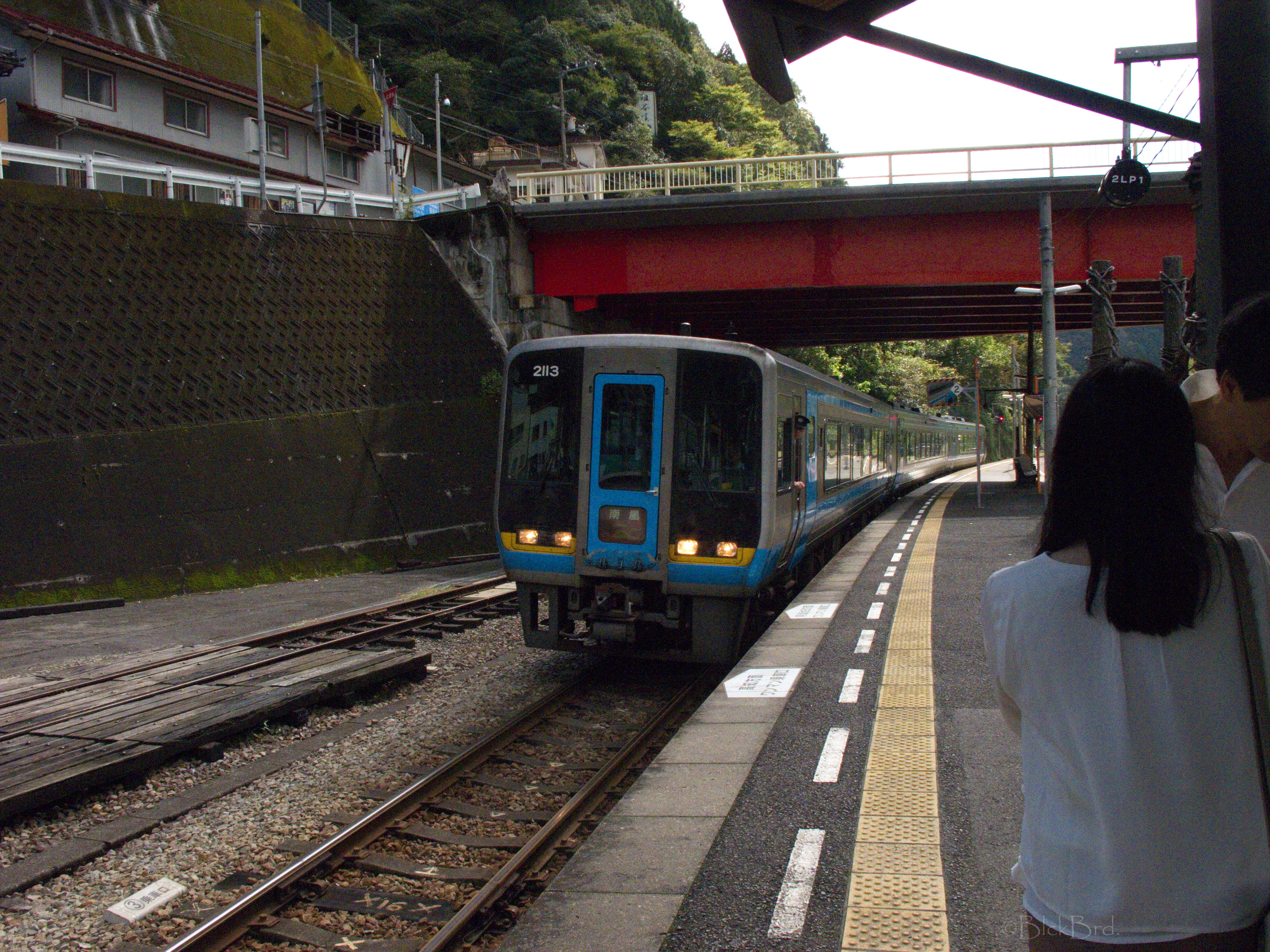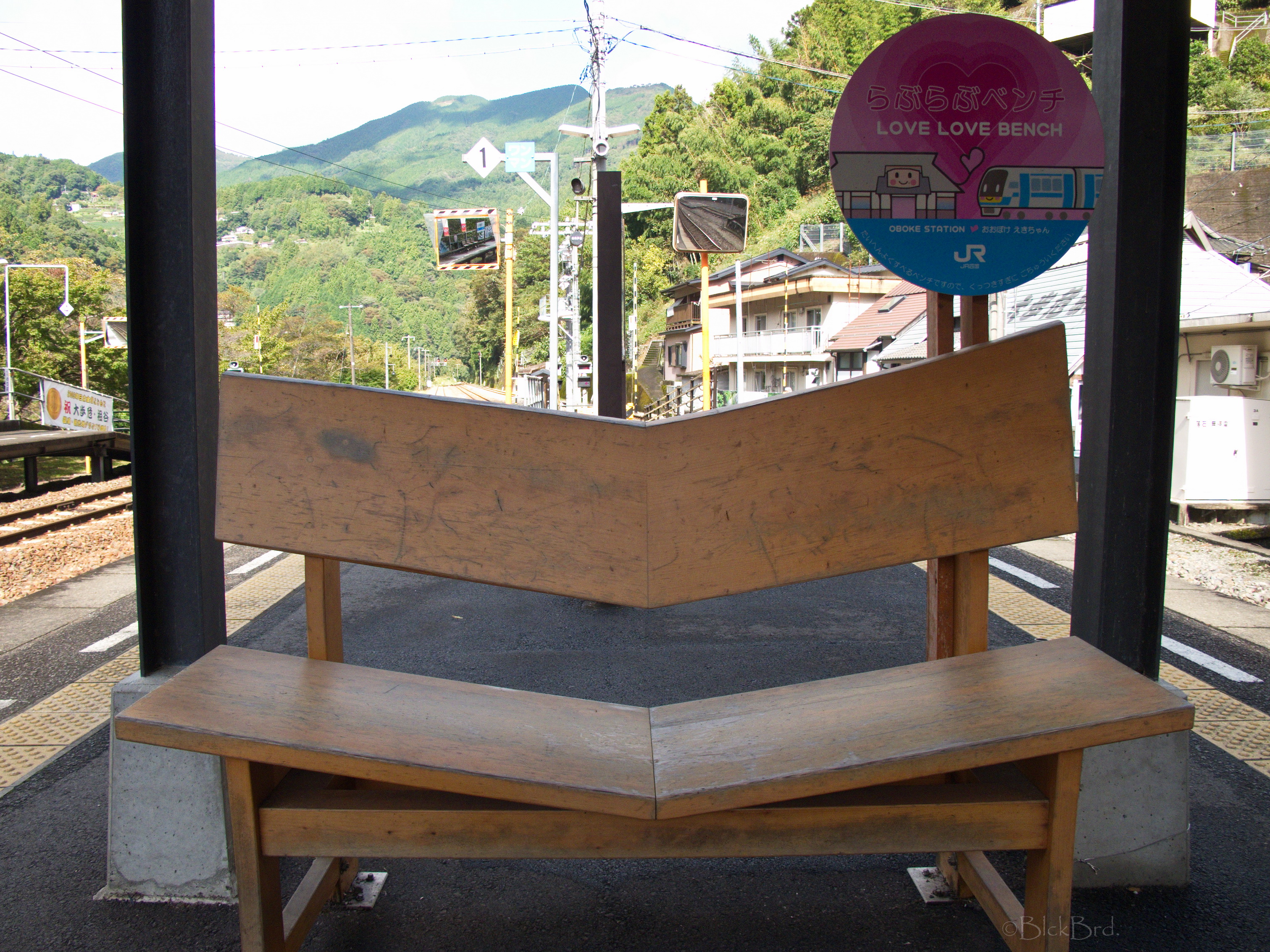 Une dernière photo du banc wadafak du quai et c’est à ce moment que la vieille dame de la gare nous rappelle à grand renfort de gestes pour nous donner 2 sacs de victuailles gratuits… je ne saurais jamais si elle fait ça avec tout le monde ou si on lui a paru particulièrement kawaii comme gaijin ce qui serait bizarre…