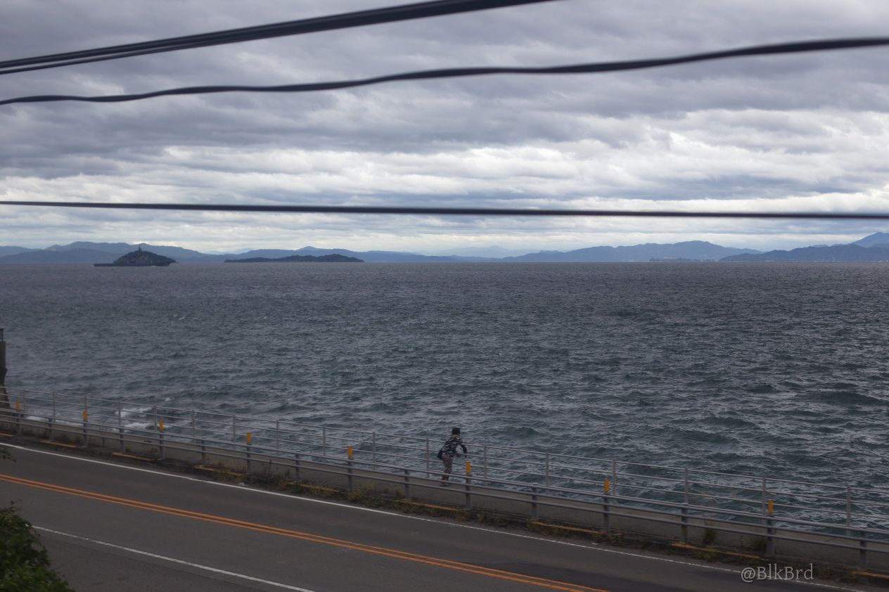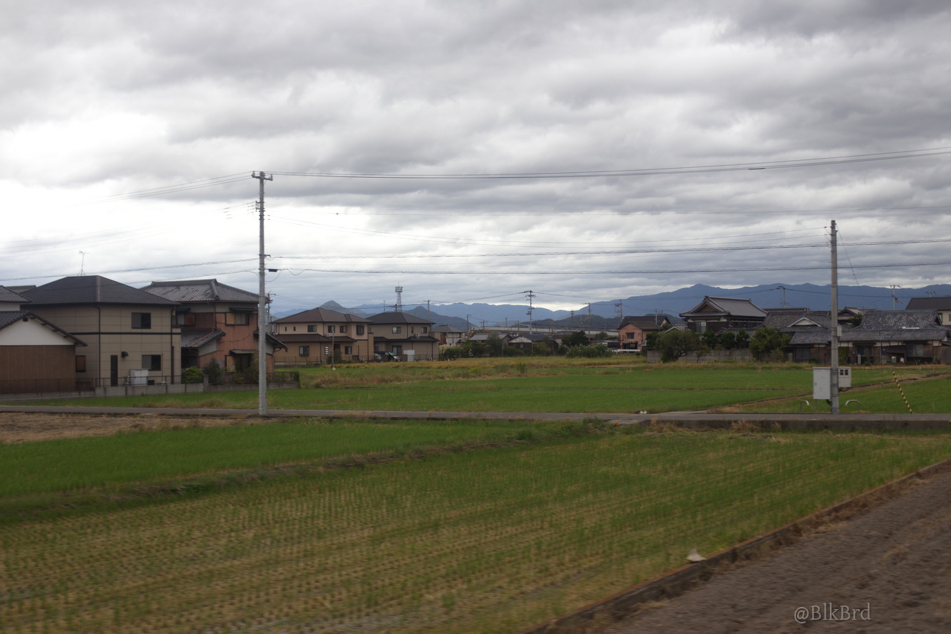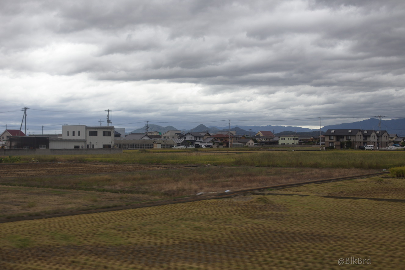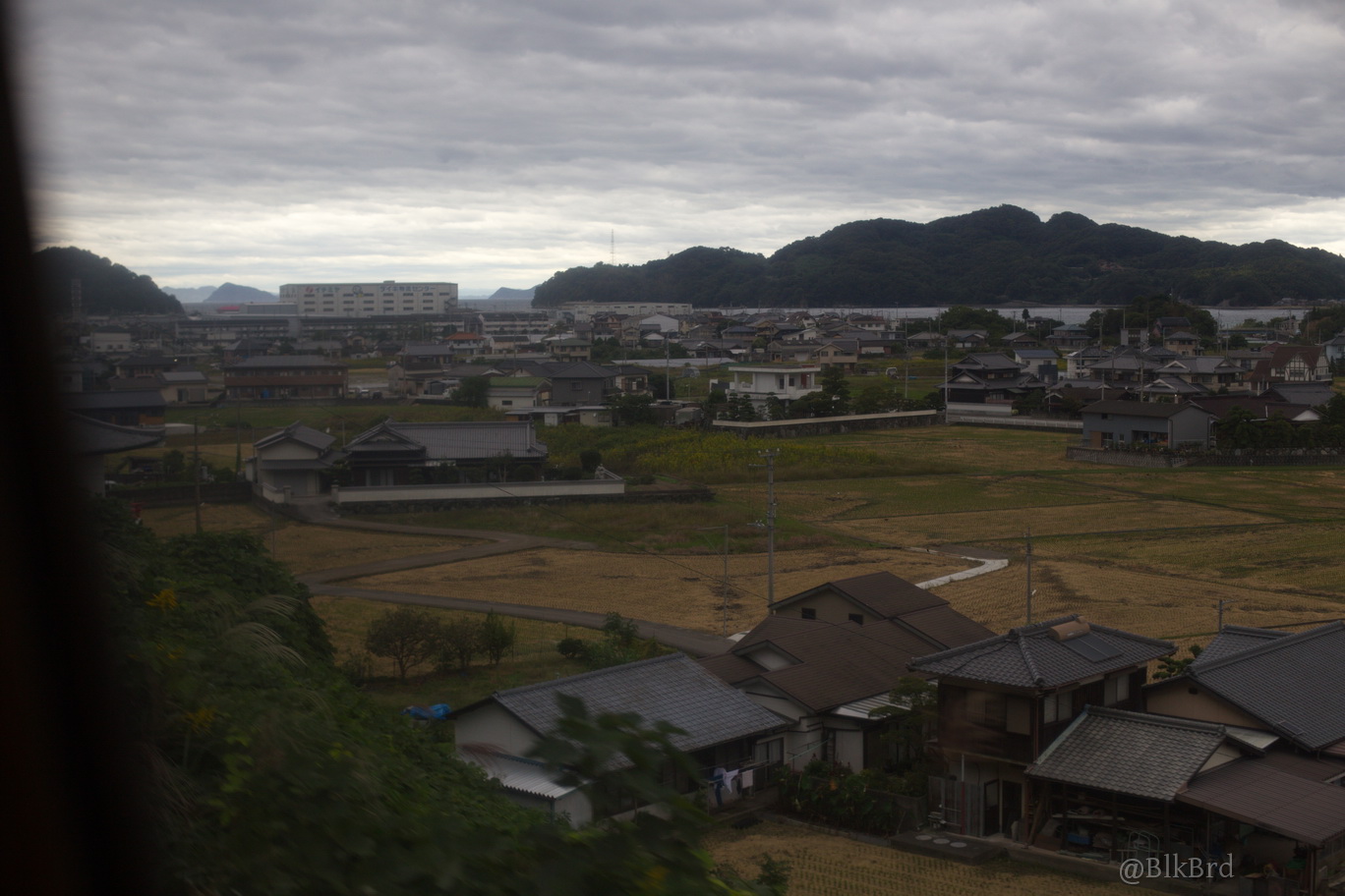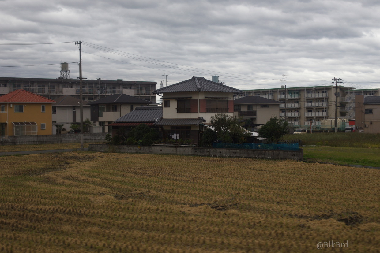 En route pour Tokyo, je sentais la fin du voyage arriver, alors j’ai mitraillé avant de la quitter la mer de Seto, les villes côtières et les infrastructures gigantesques, les ports industriels et les chantiers navals, les champs et les montagnes, les maisons et les immeubles, les gares évidemment… N’hésitez pas à passer vite, je comprends que ça puisse être lassant, cependant, tout ça dessine pour moi le Japon comme je le vois en tant que touriste, c’est pourquoi je laisse cette multitude et ces répétitions (et pourtant j’ai trié relativement drastiquement déjà), au cas où ça parlerait à quelqu’un d’autre que moi.