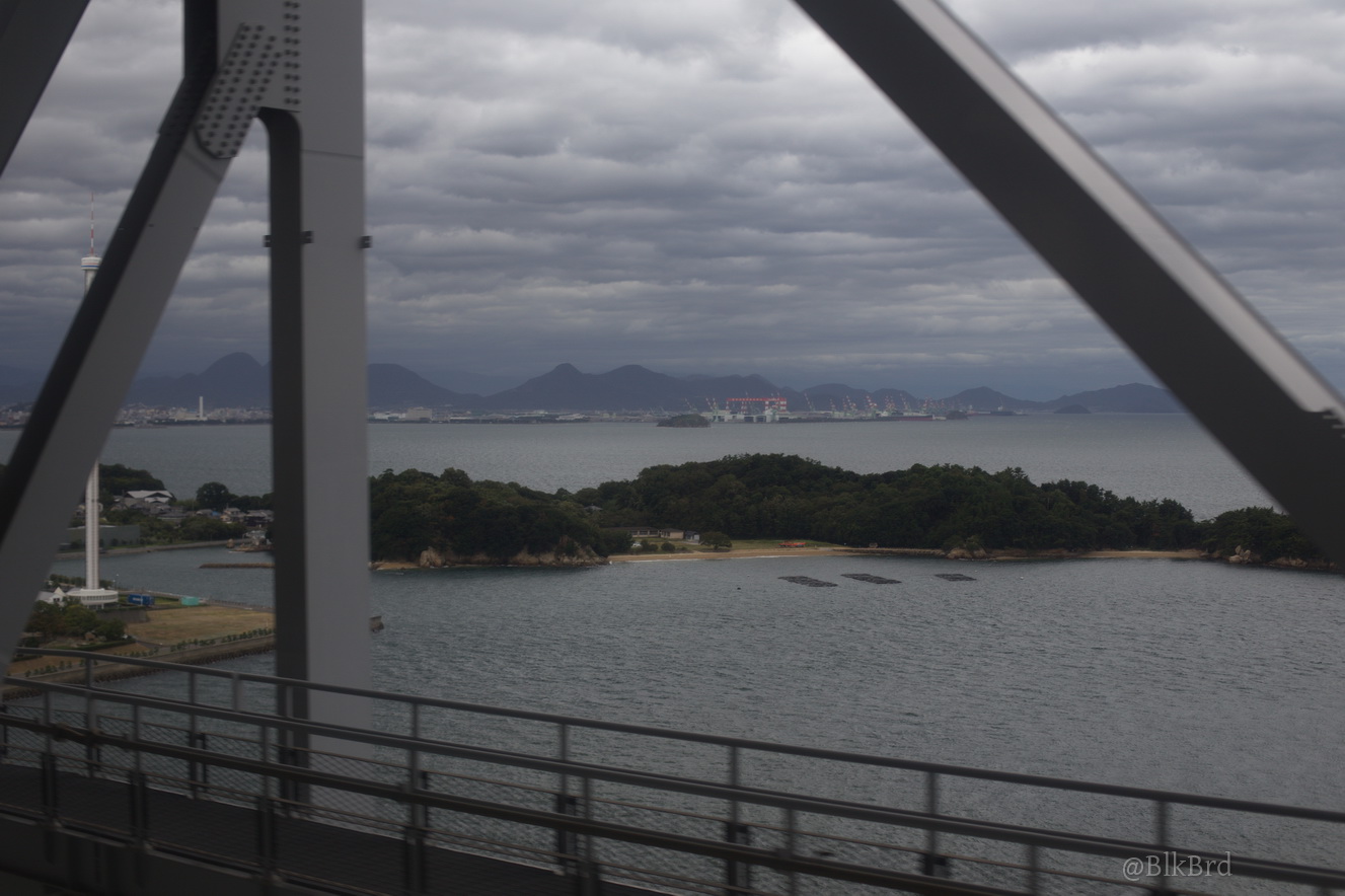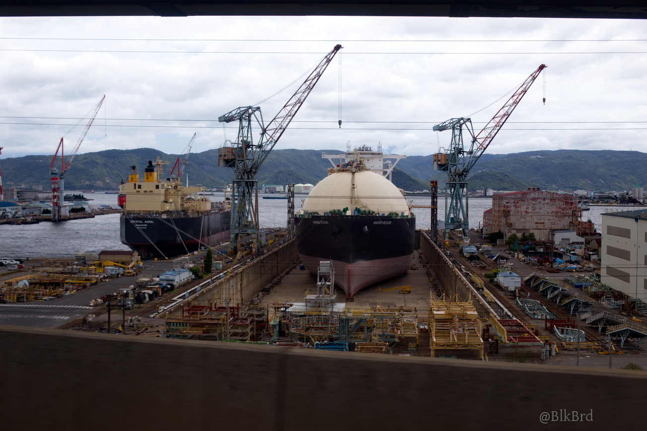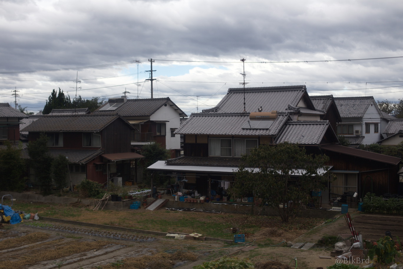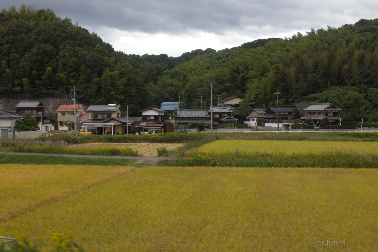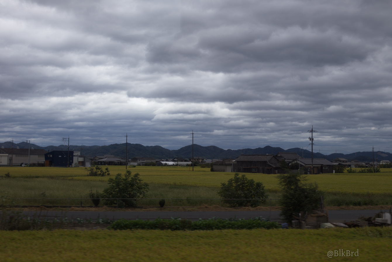 En route pour Tokyo, je sentais la fin du voyage arriver, alors j’ai mitraillé avant de la quitter la mer de Seto, les villes côtières et les infrastructures gigantesques, les ports industriels et les chantiers navals, les champs et les montagnes, les maisons et les immeubles, les gares évidemment… N’hésitez pas à passer vite, je comprends que ça puisse être lassant, cependant, tout ça dessine pour moi le Japon comme je le vois en tant que touriste, c’est pourquoi je laisse cette multitude et ces répétitions (et pourtant j’ai trié relativement drastiquement déjà), au cas où ça parlerait à quelqu’un d’autre que moi.