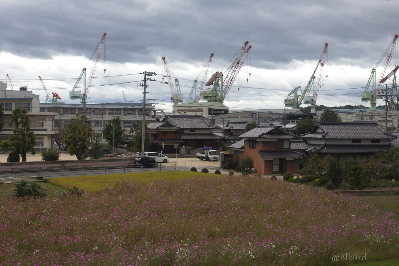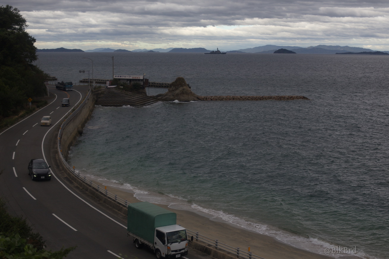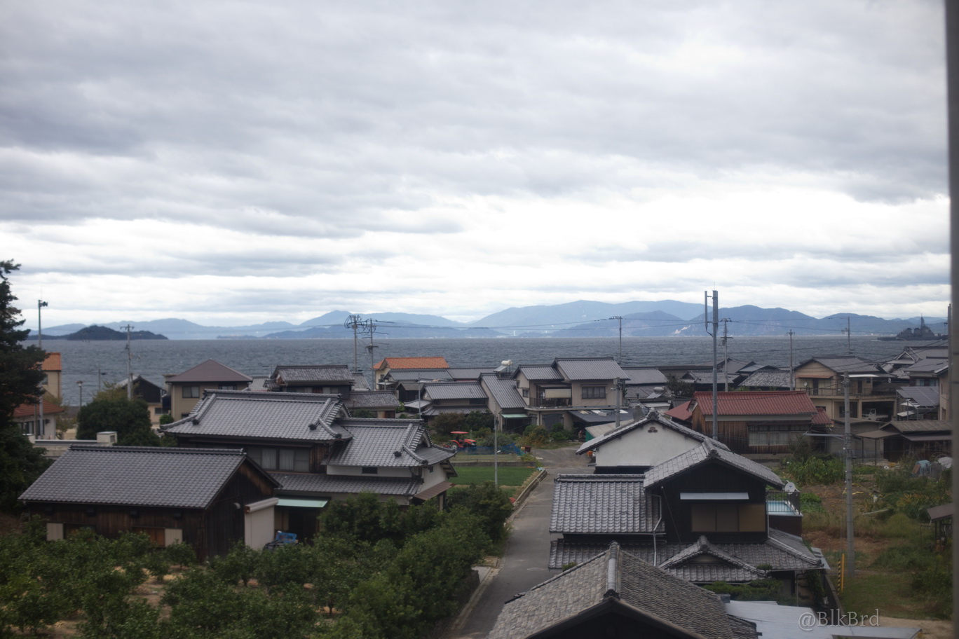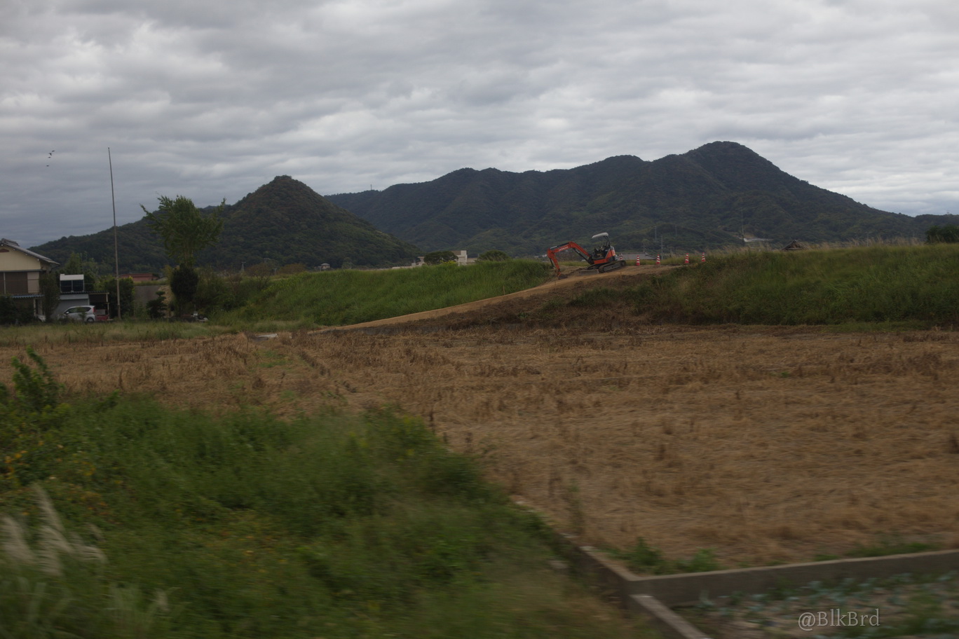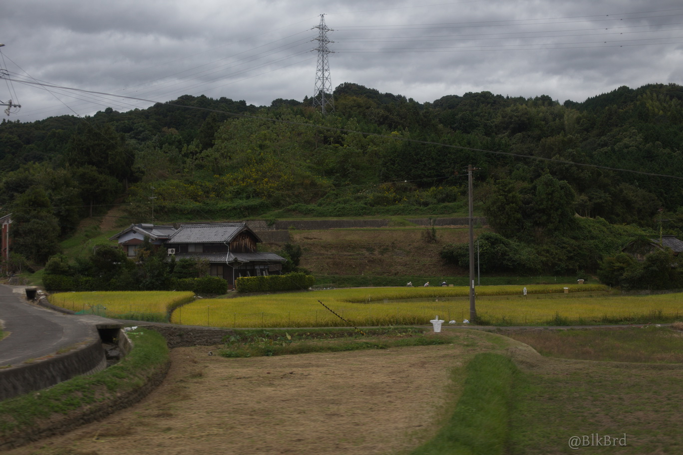 En route pour Tokyo, je sentais la fin du voyage arriver, alors j’ai mitraillé avant de la quitter la mer de Seto, les villes côtières et les infrastructures gigantesques, les ports industriels et les chantiers navals, les champs et les montagnes, les maisons et les immeubles, les gares évidemment… N’hésitez pas à passer vite, je comprends que ça puisse être lassant, cependant, tout ça dessine pour moi le Japon comme je le vois en tant que touriste, c’est pourquoi je laisse cette multitude et ces répétitions (et pourtant j’ai trié relativement drastiquement déjà), au cas où ça parlerait à quelqu’un d’autre que moi.